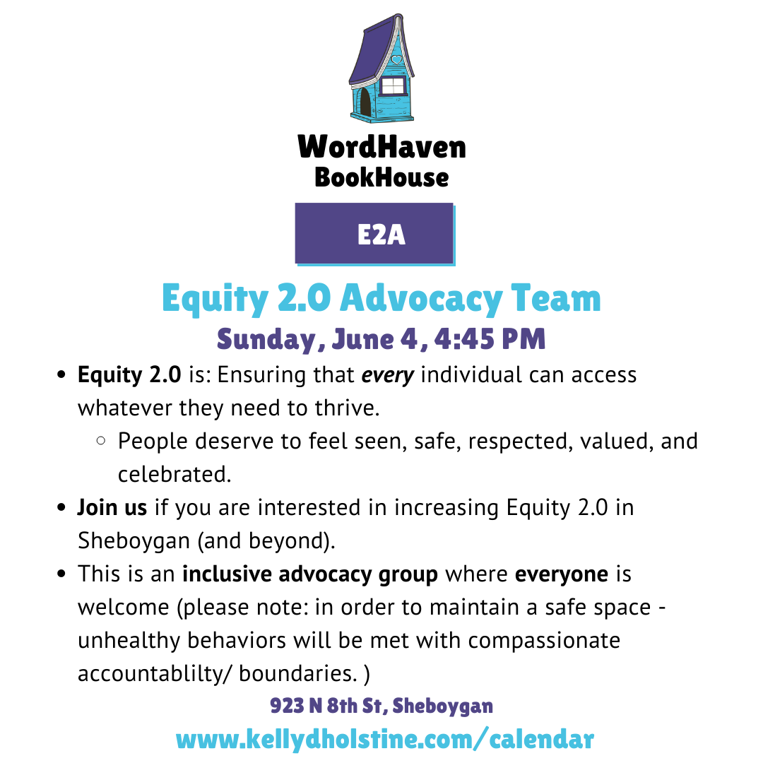 Join us for the first ever meeting of the new Equity 2.0 Advocacy Team. We will be defining equity, talking about the difference between that and equality, and brainstorming what this group can do! EVERYONE is welcome.